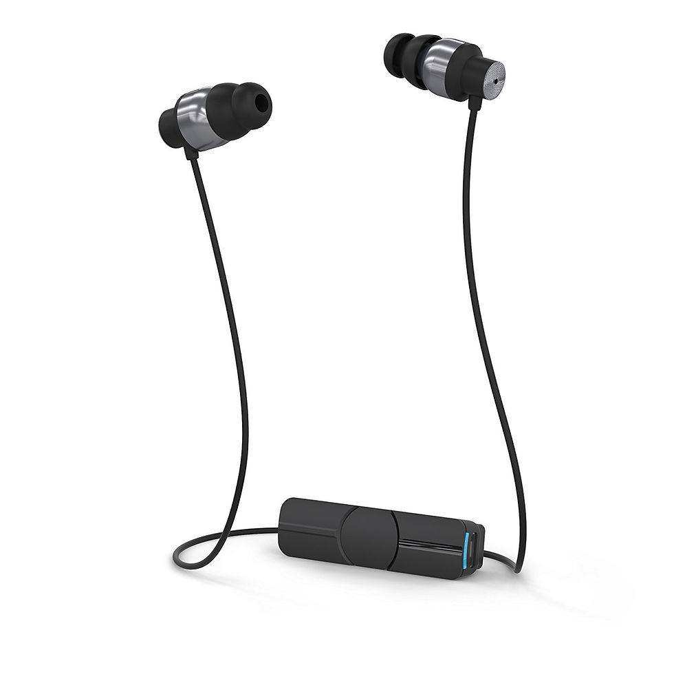 Bluetooth headphones - I got a free upgrade to an iPhone 7 when my phone got damaged, but I didn't consider the fact that it doesn't have a headphone jack until we were at the airport for one of our trips. Having downloaded some Netflix movies/episodes and Audible books I was pretty disappointed at the prospect of having no way to listen to them. I ended up purchasing some bluetooth headphones at the airport and I really like them. They have a built-in magnetic clip for keeping them securely wound up when not in use which can also clip to my collar when I'm listening with them so they don't swing around. The only downside is that they have to be charged and if your device doesn't support bluetooth, you're out of luck.